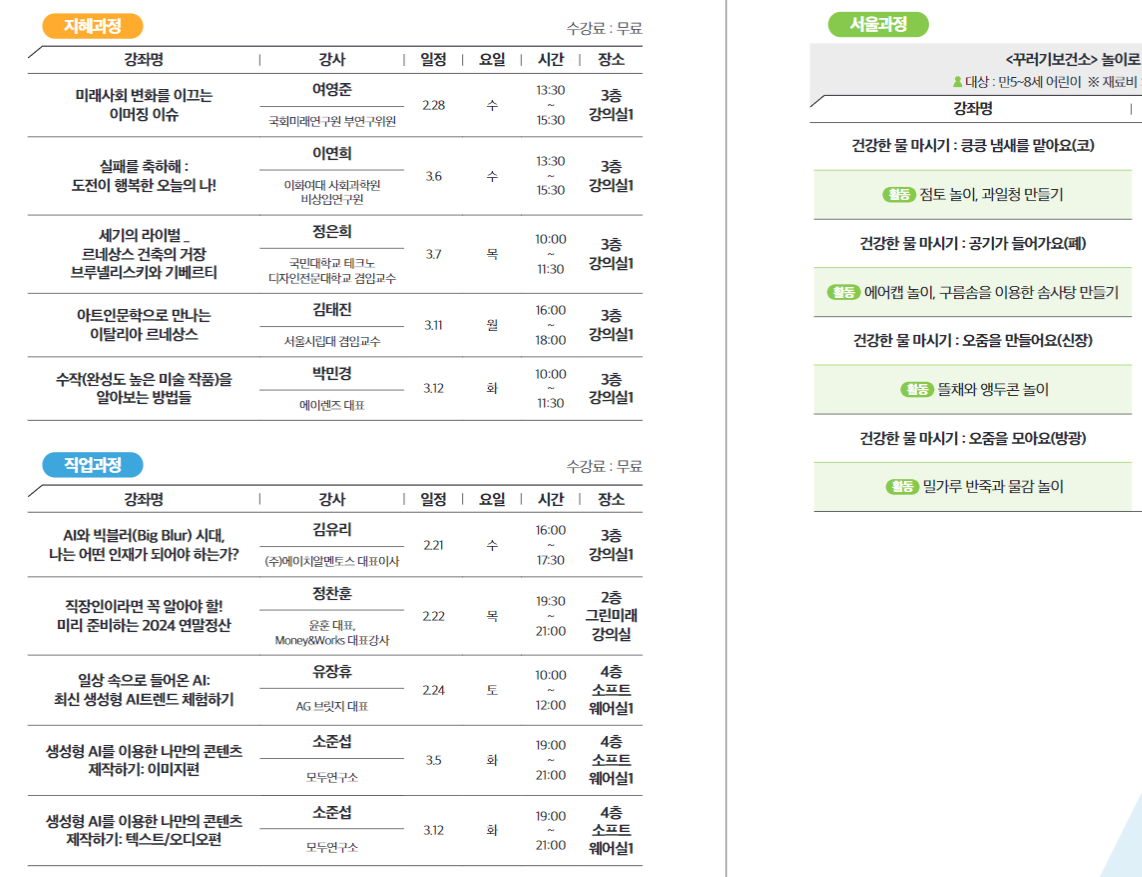 서울시민대학강좌과목