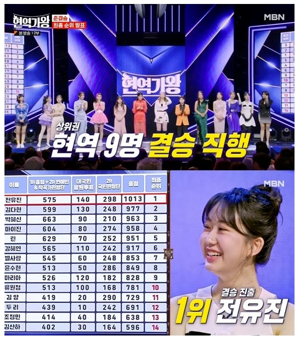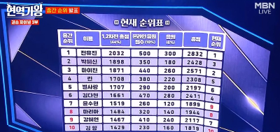 현역가왕의 순위는 지난 1라운드때의 총점결과에 현장심사 결과 및 대국민 응원투표와 실시간 문자투표 점수를 반영해 최종 순위를 결정했습니다.