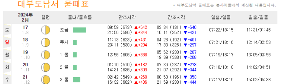 물때시간표도 만조와 간조시각뿐 아니라 일출과 일몰시간도 함께 나오기 때문에 여행전 여행당일 일몰시간을 확인하고 가신다면 멋진 일몰감상도 하실 수 있습니다.