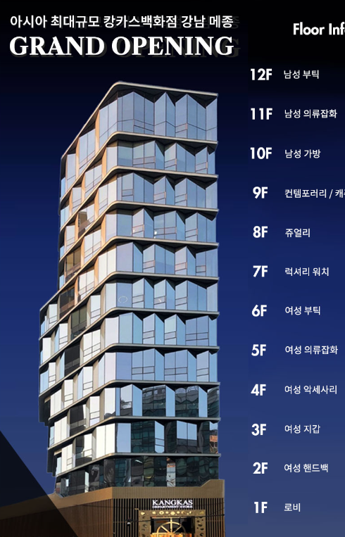 캉카스 백화점은 현재 대구와 강남 두지점으로 운영되고 있습니다.