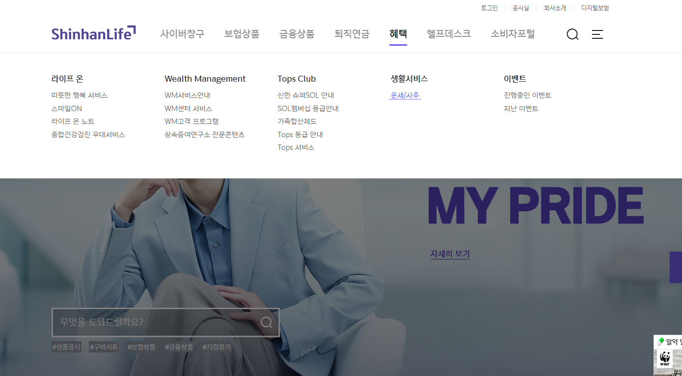 신한라이프 홈페이지 운세카테고리에서는 운세 뿐 아니라 내 운명의 배우자나 프리미엄 궁합보기 같은 애정운과 궁합에 대해서도 확인 할 수 있습니다.